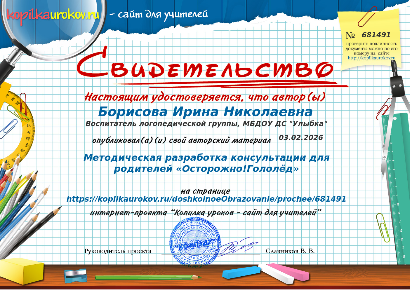 Свидетельство о публикации